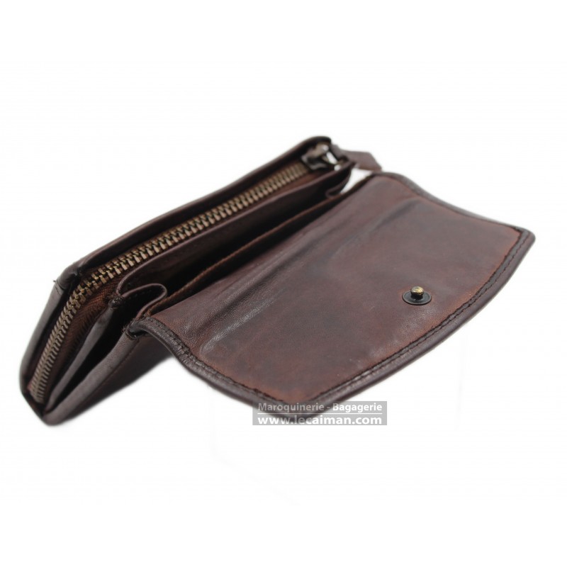 Fabriqué en cuir de vachette souple, il séduit par son toucher doux, son aspect patiné et sa grande souplesse à l’usage. Un accessoire compact et élégant, pensé pour un usage quotidien.