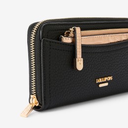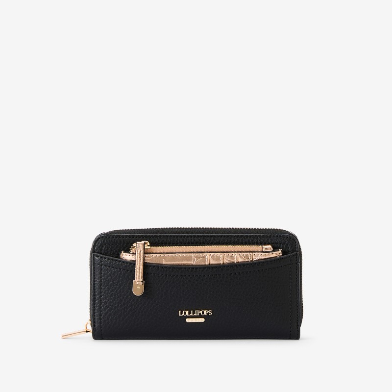 Le grand portefeuille zippé Riada de Lollipops séduit par son simili cuir grainé et son logo doré en relief pour un look élégant et moderne.