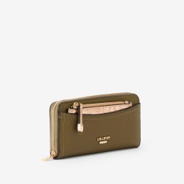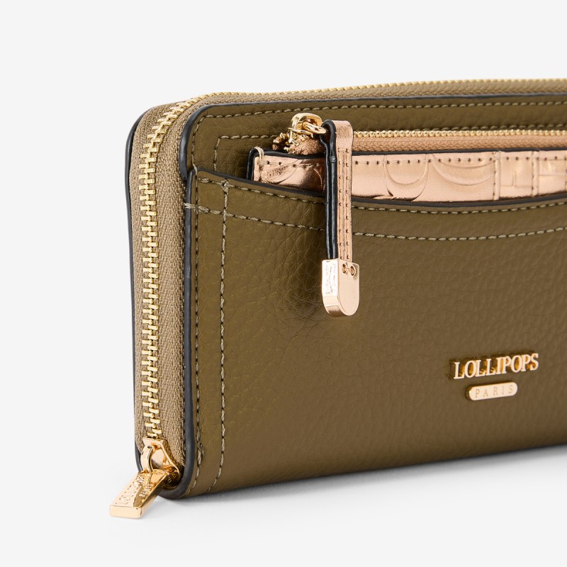 Le grand portefeuille zippé Riada de Lollipops séduit par son simili cuir grainé et son logo doré en relief pour un look élégant et moderne.