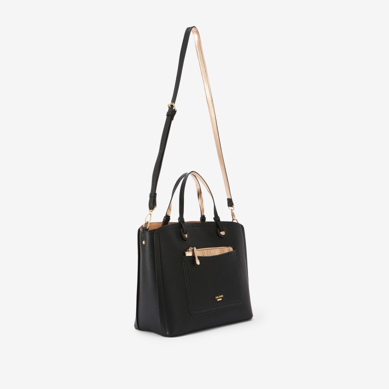 À l’intérieur et à l’extérieur, il offre poches plaquées et poches zippées, ainsi qu’une petite pochette métallisée embossée pour vos essentiels.