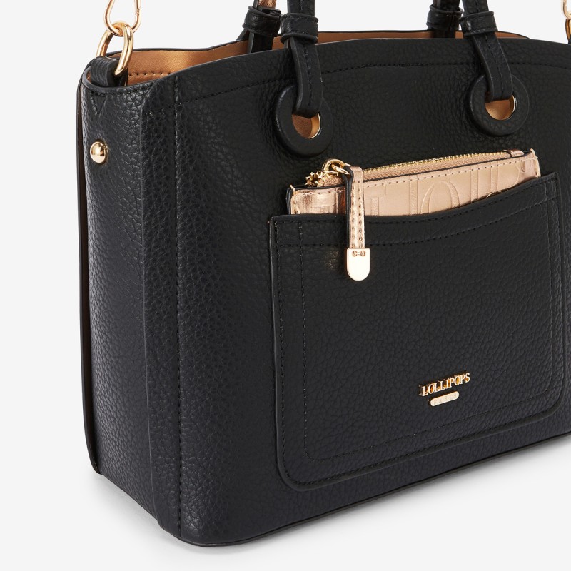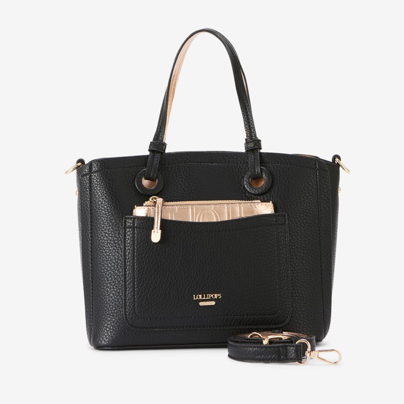 Le grand sac shopper L Riada de Lollipops allie simili cuir grainé élégant et bandoulière amovible et ajustable pour un porté pratique et confortable. Il dispose d’un compartiment principal zippé, de poches multiples à l’intérieur et à l’extérieur, ainsi que d’un logo doré en relief pour un style chic au quotidien.