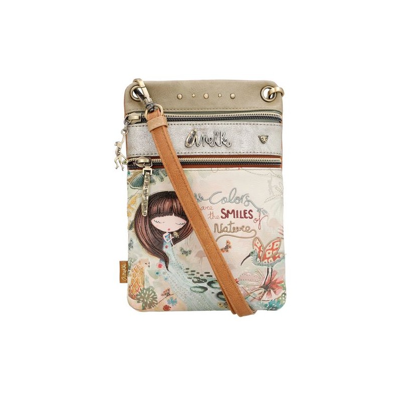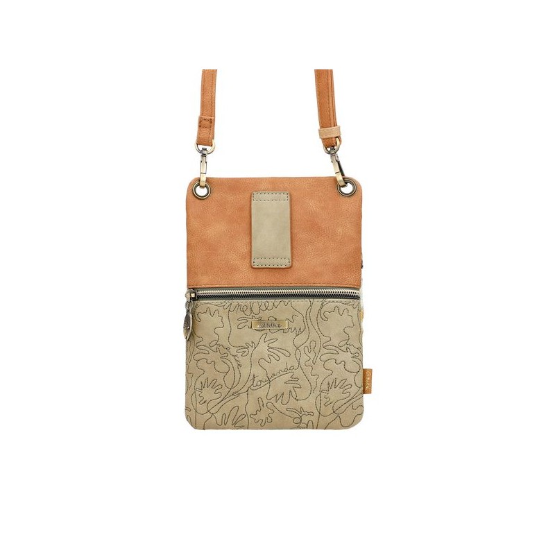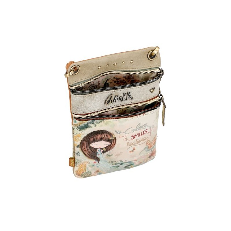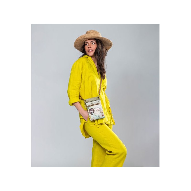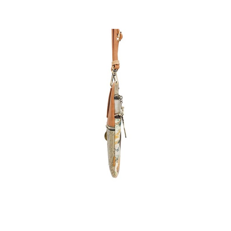 Ce mini-sac peut être porté en travers grâce à sa bandoulière réglable. Son intérieur est doublé d'un tissu original imprimé de motifs de la collection, et comporte des poches.