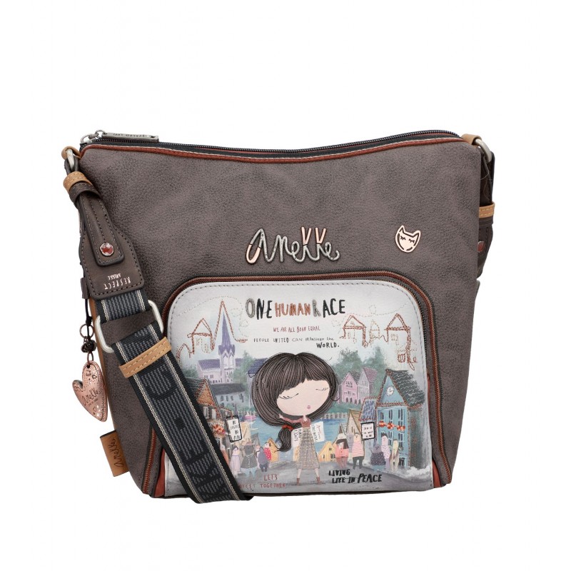 Sa face avant représente Anekke au milieu d'une foule rassemblée pour la paix et l'égalité, dans des tons de gris, de bleu, d'ocre et de marron, combinée à des broderies et des phrases inspirantes. Sa face arrière est imprimé en plusieurs couleurs, avec des messages de paix et un patch décoratif.