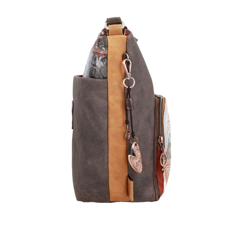 Ce sac est équipé d'une bandoulière réglable pour l'ajuster selon vos envies. Son intérieur est doublé d'un tissu original imprimé de motifs de la collection, et comporte des poches.