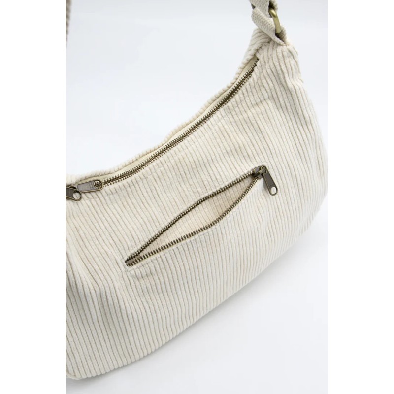 Le grand sac bandoulière Rosa de Hindbag en velours côtelé bio protège vos essentiels avec élégance grâce à sa doublure unie.