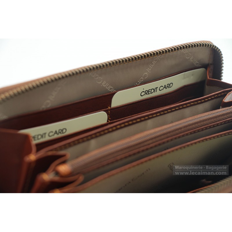 Offrez-vous l’élégance et l’organisation avec ce compagnon zippé en cuir véritable signé Gianni Conti.
